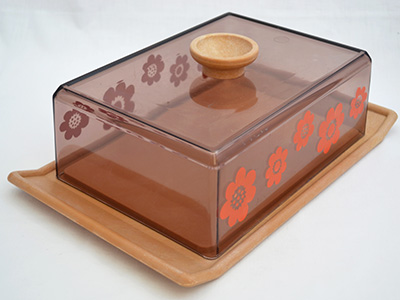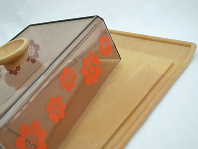 | Erik Kold, Denmark チーズ・ケース 31×20cm 高さ:10.5cn(全体のサイズ) スウェーデンではニルスヨハンからSallyシリーズとして販売されていた 可愛い花柄のプラスチック製の保存容器。 北欧の塊のチーズを保管するためのケースですが、 パンやシナモンロールなどの焼き菓子にも使える大きさです。 蓋のつまみ部分の下にひびのようなラインが入っていますが 全体的には使用感の少ない良好な状態です。 |