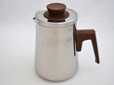 | NilsJohan, Sweden ステンレス・ポット ブラウンハンドル 直径:11.5cm 高さ:17.5cm(蓋のつまみまで) (ハンドルを含んだ最大幅は17cm) くちばしのような小さな注ぎ口が可愛い小ぶりなステンレス・ポット。 ふたとハンドルはブラウンカラーのプラスチック製です。 ステンレス表面にわずかなスクラッチは見られますが、 内側や底に使用した形跡のほとんど無い大変良好な状態です。 |