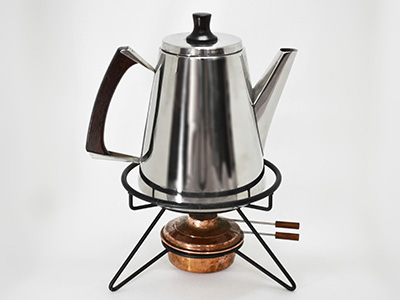 | NilsJohan, Sweden コーヒーメーカー/ポット用スタンド 19×19cm 高さ:11cm ミッドセンチュリー時代の北欧で流行した ワイヤーのデザインを取り入れたポット用スタンド。 本来はニルスヨハンのサイフォン式コーヒーメーカー用の バーナーとスタンドの部分ですが Hollywoodシリーズのポットにも使えます。 (底直11cmから15cmのポットに対応します) スタンドにはいくつかのバリエーションが存在し、 今回入荷分は中央に黒いリングがセットされています。 今回入荷分の足部分には籐の装飾がありません。 黒い塗装に剥がれやスクラッチがあり 露出した下地部分に軽い錆が見られます。 ※ 付属のコッパー製バーナー(デンマーク製)は 汚れや変色などが目立ちます。 |