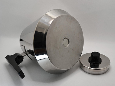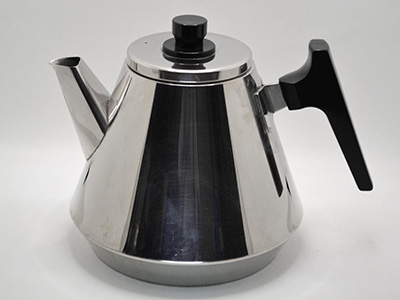 | Hackman,Finland Brasilia ポット 1.5リットル デザイン: Veikko Aliklaave 1966年 直径:16.5cm 高さ:16.5cm(蓋のつまみまで) (注ぎ口からハンドルまでの最大幅は22.5cm) フィンランドのキッチン用品メーカー、ハックマンより スタイリッシュなデザインのステンレス製ポットです。 ハンドルの継ぎ目周辺にHackmanのロゴと サイズの刻印が見られます。 内側に軽いカルキ跡、底にわずかな汚れやスクラッチが ありますがヴィンテージとしてはとても良い状態です。 ステンレス側面や、ハンドル&つまみの黒いナイロンにも 軽いスクラッチなどは見られますが、全体的に艶があり それほど目立つ傷やダメージはありません。 使用上の注意: 現時点では水漏れの無い状態を確認しておりますが、 製造から長い年月が経過しているため、直火による使用は 注ぎ口溶接部分の劣化原因となる場合があります。 |