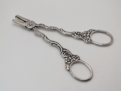 | NilsJohan, Sweden Amsterdamシリーズ 葡萄用ハサミ 13.1×5.8cm スウェーデンでは定番のカトラリー・シリーズとして人気のあった Amsterdamシリーズから葡萄の房を切り分けるハサミです。 デザイナーのG. Akerlindは花の美しい国オランダをイメージに このAmsterdamシリーズをクリエイトしたそうです。 素材のニューシルバー(Nysilver)は銀のような質感と 手頃な価格帯で19世紀後半から広く流通しました。 内側に付着した汚れなど、軽い使用感がありますが 全体的にはそれなりに良好な状態です。 (※ 紙などを切る通常のはさみとしては使えません) |