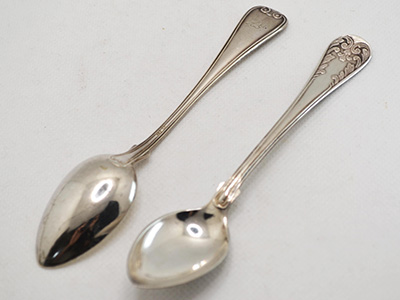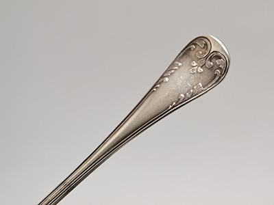 | Gammal Franskモデル スプーン 4本セット ニューシルバー 12.7×2.4cm Gammal Fransk(古いフランス式)という名前の アカンサス装飾が施されたスプーン・セット。 フランスで流通した銀カトラリーのデザインですが 1800年代にスウェーデンに伝わり定番となりました。 素材のニューシルバー(Nysilver)は銀のような質感と 手頃な価格帯で19世紀後半から広く流通しました。 ハンドルの裏側部分にモノグラムが刻まれています。 (4本のうち3本はA.G.、残りの一本はG.G.) 軽いスクラッチや黒ずみなどの使用感がありますが 全体的にはそれなりに良好な状態です。 |