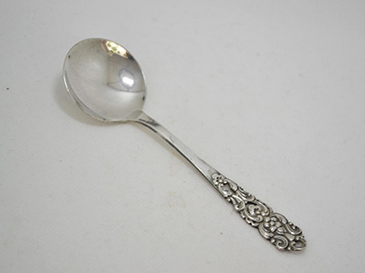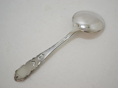 | GAB, Sweden Bellis コンポート・スプーン ニューシルバー 13.1×4cm スウェーデンのカトラリー・メーカーGABより 花模様が可愛いBellisモデルの丸いスプーン。 砂糖をすくうためのスプーンですが ジャム用などにも使いやすそうなサイズです。 素材のニューシルバー(Nysilver)は銀のような質感と 手頃な価格帯で19世紀後半から広く流通しました。 軽いスクラッチや黒ずみがありますが、 全体的には良好な状態です。 |