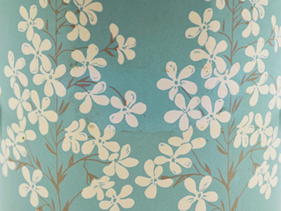 | Vilen Finnware, Finland クッキー缶 パステルブルー 直径:11cm 高さ:13.2cm 淡い水色を背景に白い小花が咲いた やさしい雰囲気のキャニスター。 側面の一部にラベルを剥がしたような跡があり その部分は周辺よりも色合いが若干明るめです。 擦れや軽いへこみ、汚れなどの使用感はありますが 古いブリキ缶としては使用に問題の無い良い状態です。 |