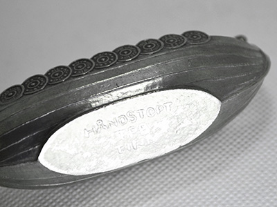 | ソルトディッシュ ヴァイキング船 ピューター ノルウェー製 9.5×3cm 高さ:4cm スカンジナビアのヴァイキング時代を象徴する船を模った ピューター製の小さなソルトディッシュ。 船首には握り獣が飾られています。 軽い使用感がありますが、全体的には良好な状態です。 底にHandstopt(手打ち)の刻印があります。 |