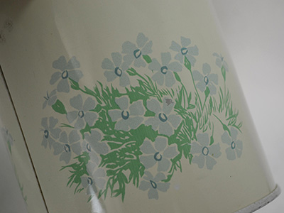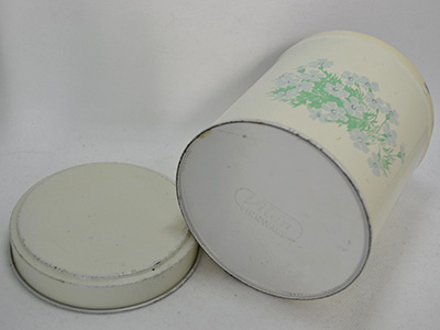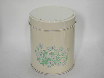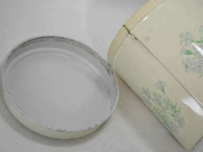 | Vilen Finnware, Finland クッキー缶 クリーム色 直径:11.4cm 高さ:13.2cm 淡いパステルカラーの花がプリントされた 儚げなムードが漂うキャニスター。 擦れやスクラッチがところどころにあり、 一部は錆や下地の金属色が露出しています。 古いブリキ缶としては使用に問題の無い良い状態です。 |
