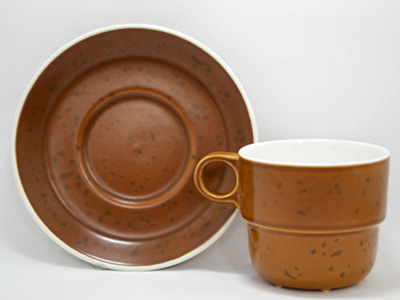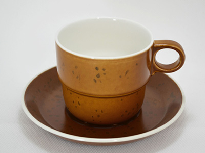 | Gustavsberg, Sweden Coq コーヒー・カップ&ソーサー ボーンチャイナ デザイン: Stig Lindberg カップ 直径:7.5cm 高さ:6.5cm ソーサー 直径:12.8p リンドベリ・デザインのロングセラーCoqシリーズより ボーンチャイナ製のコーヒー・カップ&ソーサー。 ブラウン・エッグのようなデコレーションと カップを重ねて収納できる機能的なシェイプです。 Coqシリーズにはストーンウェアとボーンチャイナの ふたつの異なる素材が存在します。 今回入荷したコーヒー・カップ&ソーサーは リンドベリのBrun LinjeやLindaシリーズなどと 同じBLモデルとなります。 ソーサー裏の高台に製造時からの 釉薬がかかっていない白い部分がありますが 全体的に使用感の少ない良好な状態を保っています。 |
