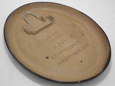 | Gabriel, Sweden 陶板 サンシキスミレ Styvmorsviol A244 Agermanland デザイン: Ingegard Burmeister 横:13.9cm 縦:17.2cm 幅:1.5cm オンゲルマンランド地方のシンボルフラワーである サンシキスミレの陶板レリーフ。 手作業ならではの色具合に温かみが感じられます。 楕円形の枠と立体的な花部分には艶があります。 陶板の表面にはデザイナーであるI, Burmeisterのサイン、 裏面には花の名前、地方名、モデルナンバーが入っています。 裏面に軽い汚れが見られますが 目立つダメージ等の無い良好な状態です。 |