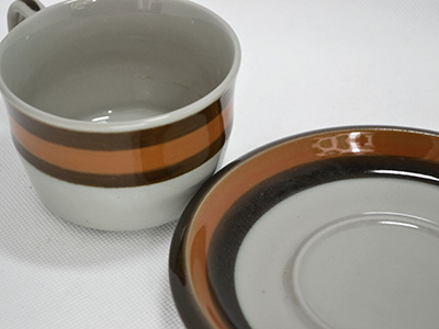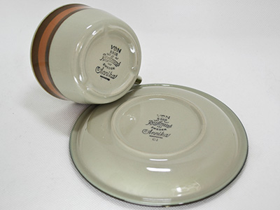 | Rorstrand, Sweden Annika コーヒー・カップ&ソーサー 1972-81年 デザイン: Marianne Westman カップ 直径:8.5p9 高さ:6.8cm ソーサー 直径:14.3cm ストーンウェア素材にハンドペイントで 幅広のラインを装飾したカップ&ソーサー。 1970年代らしい明るさが感じられます。 実は家事は苦手だったマリアンヌ・ウェストマンは キッチンを楽しく彩る才能には恵まれ、 ローストランドの人気デザイナーとして 数々のシリーズを手掛けました。 全体的に良好な状態を保っています。 |