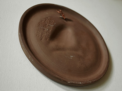 | Deco, Sweden 陶板 ウソ鳥と白い花 Domherre デザイン: Bertil Johansson 直径:15.5cm 幅:2cm 赤い小鳥と白い花が描かれたウォールプレート。 立体的な陶板にハンドペイントで色付けが施されています。 木の枝と花、小鳥の部分には艶があり、それ以外は マットな質感の仕上がりとなっています。 裏面に白く擦れたような跡が見られますが元からのものであり、 全体的には特に目立つ使用感の無い良好な状態です。 裏面には飾り用の穴が1か所ついています。 |