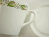 ![]() Gustavsberg, Sweden カップ&ソーサー LIモデル デザイン Stig Lindberg カップ 直径:8センチ 高さ:5センチ ソーサー 12.5センチ リンドベリのLIモデルに葉のプリントが施されたボーンチャイナのカップ&ソーサー。 ソーサー裏にごく薄くマークが残っています。 |