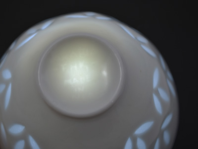 | Arabia, Finland Rice ボウル デザイン: Friedl Holzer Kjellberg 直径:7cm 高さ:4.7cm 1600年代の中国の陶器からのインスピレーションをもとに 実験と研究を重ね生み出されたRiceシリーズ。 薄い磁器に手作業で透かしを入れるこのシリーズのために 多い時では20人もの専門の作業員を抱えていたそうです。 底のマークは非常に浅く押印されているため 光に透かして薄く浮かび上がる程度です。 ふち部分に針先程度の極小の黒点がありますが 傷や汚れではなく製造時からのものです。 (一番下の写真参照) |