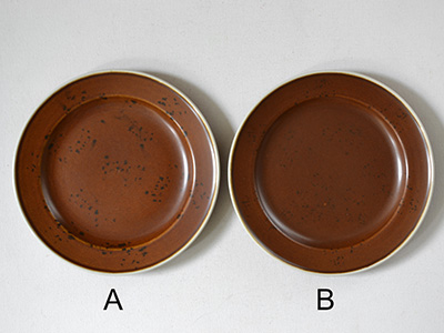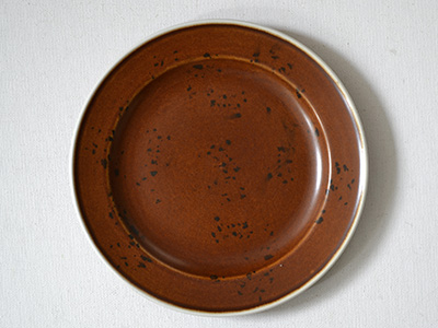 | Gustavsberg, Sweden Coq コーヒー・カップ&ソーサー デザイン: Stig Lindberg 1966-85年 直径:19.5cm リンドべリが手掛けたLUモデルの中でも 特に人気が高かったCoqシリーズのプレート。 約20年もの長い間続いたロングセラーです。 表面に塗られた茶色い色には卵の殻を思わせる 斑点模様がところどころに加えられています。 色合いのニュアンスや模様は個体によって異なります。 裏のマークは可愛い雄鶏のイラストつきです。 下の写真の在庫Aは斑点模様が少し大きく、 在庫Bは全体的に濃いめの茶色です。 お皿にごくわずかなスクラッチが見られますが 全体的には使用感の少ない良好な状態です。 在庫Bは表面に小さな色抜けがあります。 |