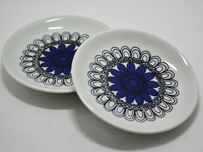 | Arabia, Finland Pastoraali ミニプレート2枚セット 1965-69年 デザイン: Esteri Tomula 直径:9.2cm アラビアの人気デザイナーであったE. Tomulaが手掛けた Pastoraaliシリーズには植物や鳥、女の子などが 可愛らしいタッチで描かれています。 その中の花模様を取り上げた小さなプレートです。 Pastoraaliはアラビア100周年を記念して復刻され、 新たなシリーズとしても人気を集めています。 お皿の表面に針先程度の小さな色のロス、 裏側に釉薬の乗っていない窪んだ跡がありますが 特に大きなダメージの無い良好な状態です。 裏面にワイヤーなどが通せる飾り穴が開いています。 |