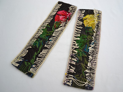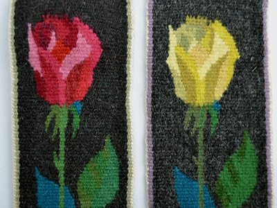 | フレミッシュ織 2枚セット 赤いバラ&黄色いバラ スウェーデン デザイン: Maaru Uotila 赤:7.7×25cm、 黄:7.7×24.5cm 同じデザインの一輪のバラを色違いでセットにしたフレミッシュ織。 2枚一緒に並べてフレームやパネルに飾って コントラストを楽しむのもいいかもしれません。 黄色いバラは下の方の糸の一部が長いままになっています。 きっちりときれいに仕上げられた作品です。 |