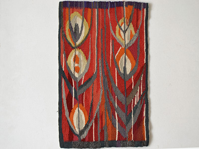 | フレミッシュ織 Guldlilja ゴールデンリリー スウェーデン デザイン: Kerstin Mauritzon サイズ: 横24.5×縦40cm まるで現代アートのようなフレミッシュ織。 マルメヒュース・ヘムスロイド協会の代表を務めた Kerstin Mauritzonのデザインによる作品です。 テキスタイル・デザイナーのKerstin Mauritzonは 1950年代から1980年代にかけて 斬新なデザインと色使いの作品達をクリエイトしました。 裏面は横糸が内側にまとめられています。 左右の長さに約1センチ前後の差がありますが 全体的にきれいな仕上がりです。 |