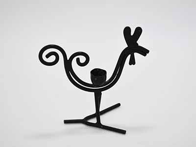 | Ystad Metall, Sweden キャンドルホルダー 雄鶏 Tupp デザイン: Gunnar Ander 横:8.6cm 縦:8.5cm 幅:4.2cm ガラスや金属製品のデザイナーとして有名な G. Anderが手がけた黒い錬鉄製の 小さな雄鶏型キャンドルホルダー。 金属パーツ類の製造から始まったYstad Metallは 1940年代頃からインテリア要素の高い商品に取り組み、 当時活躍していた有名デザイナー達に 商品開発を依頼するようになりました。 黒い塗装に小さな剥がれがありますが 全体的には良好な状態です。 底部分にMade in Swedenの刻印が入っています。 |