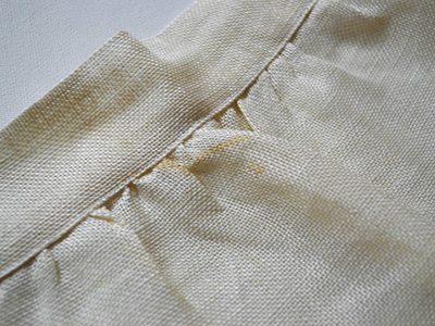 | クロスステッチ エプロン リネア 幅:67cm 丈:50.5cm、 紐の長さ:68cm×2 麻生地にピンクのリネアの花がクロスステッチされたエプロン。 リネアはスモーランド地方のシンボルフラワーであり、 生物学者のリンネが特に好んだ花としても知られています。 クロスステッチ部分の左側付近と、ウエスト周辺に ごく薄い着色が見られます。(写真参照) それ以外は比較的良好な状態です。 |