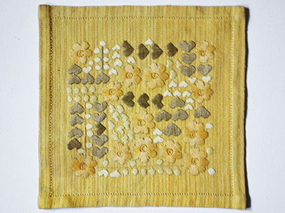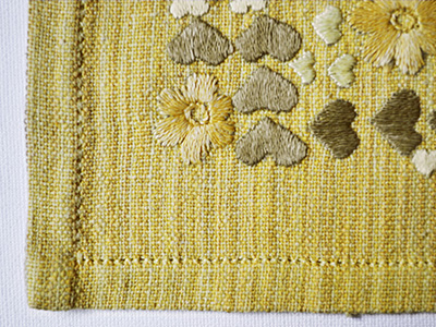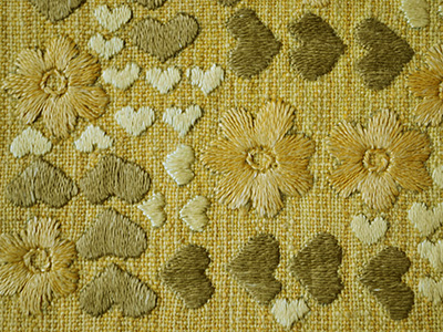 | H392 黄色い刺繍クロス ハートと花 25.5×25センチ |