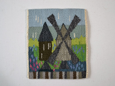 | フレミッシュ織 風車小屋 スウェーデン 13×15cm 可愛らしい風車を描いた小ぶりなフレミッシュ織。 スウェーデンの田舎では今でもこのような 古い風車小屋のある光景に出会う事があります。 のんびりとした北欧のそよ風が感じられる作品です。 裏面には不織布で糸をまとめています。 小さな作品ですが、とても丁寧な仕上がりです。 |