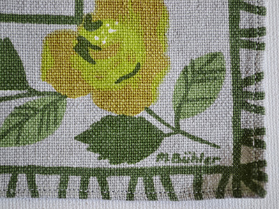 | K388 M. Buhler ハンドプリントクロス 黄色いバラ 29×28センチ |