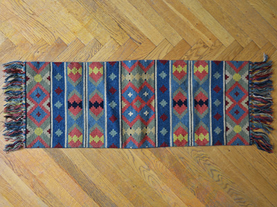 | トゥヴィスト刺繍 ロングサイズ スウェーデン 83×31cm +フリンジ約8cm アルモーゲ(民族文化)スタイルの色づかいで仕上げられた ロングサイズのトゥヴィスト刺繍作品。 しっかりとした厚みがあるため、敷物としても使えそうです。 薄く汚れた部分がありますが(一番下の写真参照) 全体的にはそれなりに良好な状態です。 濃い青の裏地がついています。 |