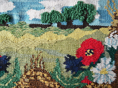 フレミッシュ織で描いたタペストリーです。