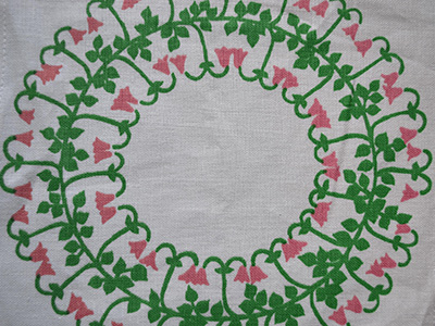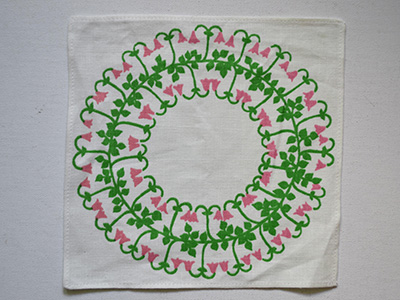 | Froso Handtryck, Sweden ハンドプリントクロス リネア Linnea 22×22cm スウェーデン・ダーラナ地方の花としても知られる リネアの花(リンネソウ)がハンドプリントされたクロス。 生物学者のカール・フォン・リンネが特に好んだ花です。 裏にシールを剥がした糊跡が薄く見られますが 全体的には良好な状態を保っています。 |