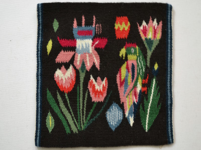 | フレミッシュ織 オウムと花 Everlovstackeより スウェーデン 横21×縦22センチ スウェーデン・スコーネ地方のEverlovという地域に伝わる 1700年代末に作られたフレミッシュ織の大作には 美しい装束をまとった女性、ライオンやオウム、 ユリやチューリップなどのカラフルなモチーフが 余すところなくふんだんに盛り込まれています。 この作品はその中の一部であるオウムと花の部分を オリジナルとは異なる配色でアレンジしたものです。 スコーネの伝統を取り入れたきれいな仕上がりの作品です。 |