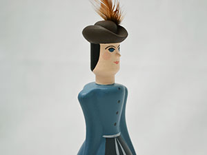 当時のクラシックな衣装がハンドペイントされ、帽子には羽飾りがついています。