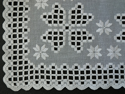 | Hardangersom ハダンガー刺繍 (ハーダンガー刺繍) 32×29.5センチ 淡いグレーのハダンガー刺繍。 オープンワークの花と白い小花刺繍の やさしい雰囲気が感じられる作品です。 ノルウェーの伝統刺繍であるハダンガーは スウェーデンのナーベルソム同様に、イタリアから伝わった ドロンワーク刺繍が発展し独自の形となったと言われています。 生地の一部に小さな汚れがあります。 (一番下の写真参照) |