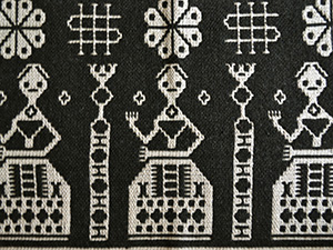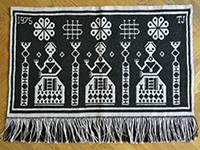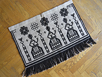 ![]() フィン織/二重織 タペストリー 58×35センチ 黒いウール糸と麻糸の組み合わせで聖書に登場する愚かなおとめの姿を描いたフィン織のタペストリー。 制作年らしき数字とアルファベットが入っています。 とてもきれいに仕上げられた作品です。 |