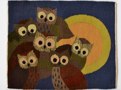 | フレミッシュ織 ミミズク スウェーデン サイズ: 横33×縦27cm 月夜にひっそりと群れを成すミミズクのフレミッシュ織。 夜の暗闇と月の輝きのコントラストを背景に 大きく目を見開いた視線でこちらを見つめています。 ゆがみのないきっちりと丁寧な仕上がりです。 作った人の高い技術力が反映された作品です。 裏面に文字が記入されたタグが縫い付けられています。 |