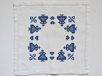 W389 青糸クロスステッチ フォークロア 24.5×24センチ