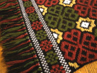 赤と緑の花が散りばめられたハルヴクラッバ織のタペストリー。
